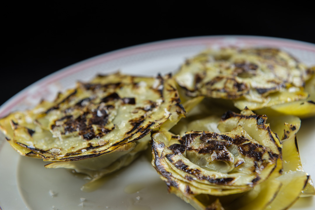 Alcachofas a la plancha con pesto rústico de tomate seco